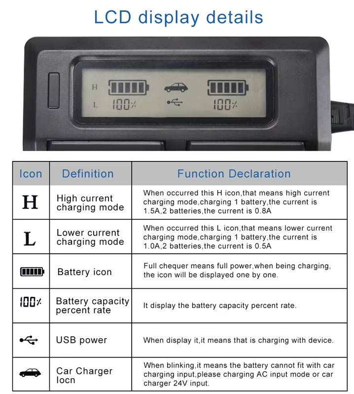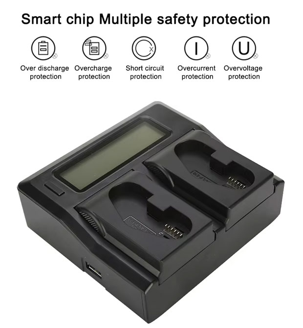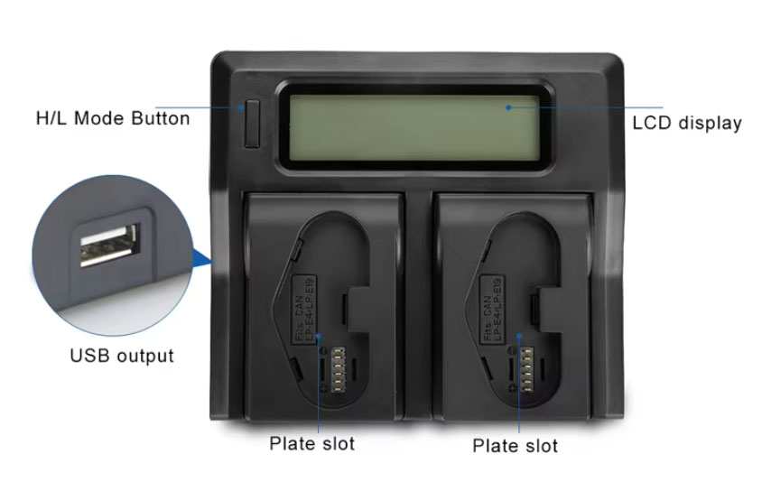 LP-E19 Dual Channel LCD Battery Charger for Canon EOS 1Dx Mark II,1Dx,1Ds Mark III,1D Mark IV