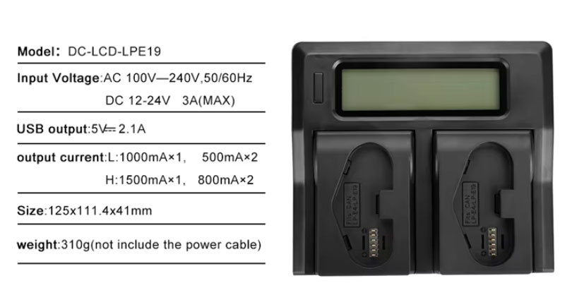 LP-E19 Dual Channel LCD Battery Charger  for Canon EOS 1Dx Mark II,1Dx,1Ds Mark III,1D Mark IV